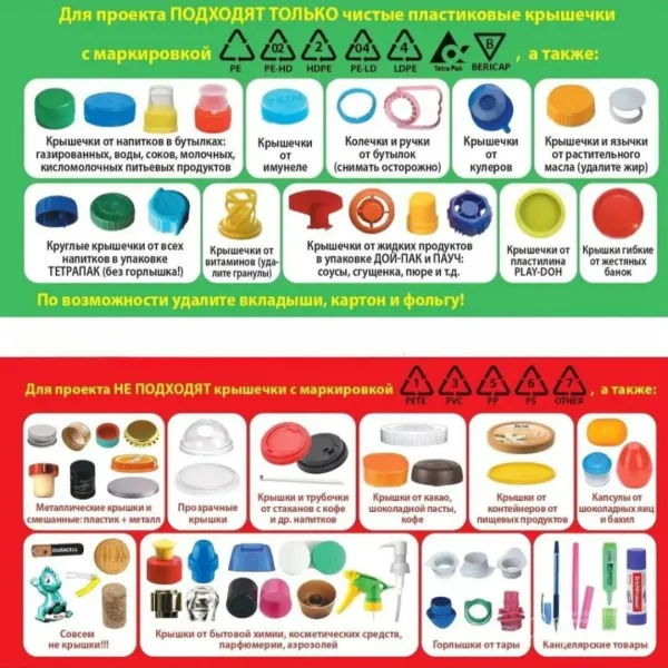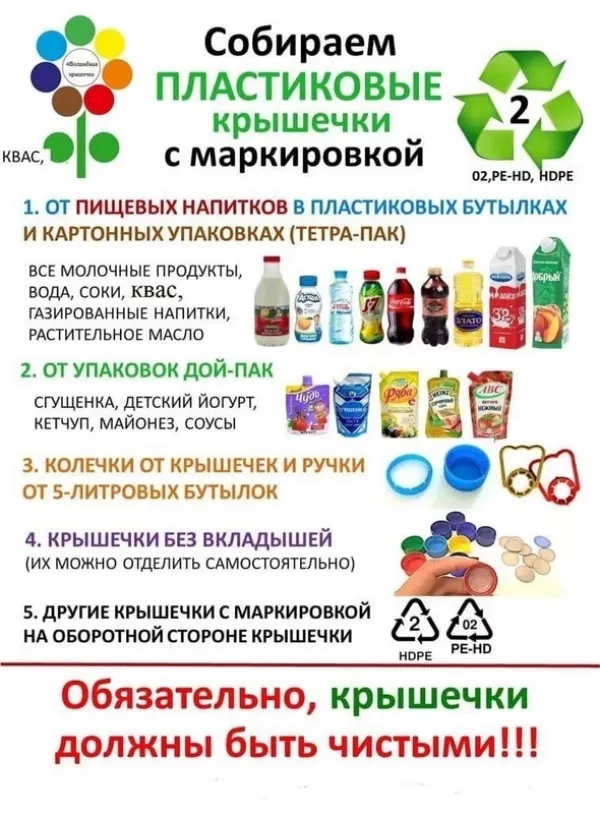В «Добрые крышечки» каждый желающий может сдать завинчивающиеся крышки от любых бутылок с напитками, от 5-литровых канистр с водой. Принимаются крышечки от молочных продуктов, в том числе от продукции брендов «Простоквашино», «Активиа», «БиоБаланс», «Актуаль» и так далее.