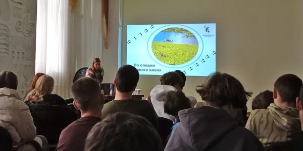 Более подробно Елена рассказала о реликтовом виде, занесённом в Красную книгу России - Северном олене. Дикого северного оленя поместили в неё пять лет назад, а охотиться запретили еще в 2000 году. К сожалению, за последние 40 лет численность лесного северного оленя снизилась, решающую роль в этом сыграли браконьерство и нарушение естественных мест обитания животных. Поэтому для восстановления и сохранения этого вида так важны особо охраняемые природные территории, такие как Центральносибирский биосферный заповедник, где животные свободны от негативного антропогенного влияния.