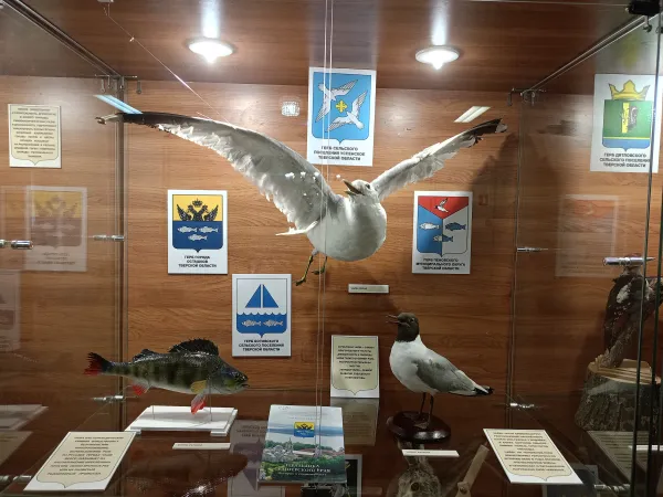 На выставке представлены экспонаты из естественнонаучного фонда Тверского государственного объёдиненного музея: гербы с изображением представителей фауны, чучела, фотографии животных, и издания из фонда Тверской библиотеки имени А.М. Горького о геральдической символике Тверского края: книги, буклеты, брошюры, открытки, значки, календари. Кроме того, даётся информация и описание символики геральдических рисунков животных и что они олицетворяют. Дополняют экспозицию иллюстративные материалы и слайд-фильм «Животные в геральдике России».