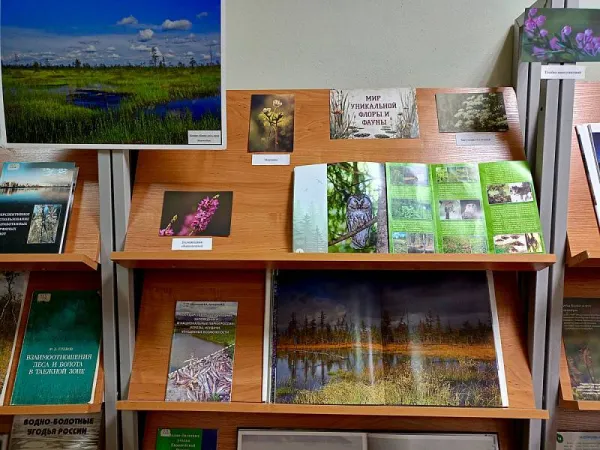 Книги на выставке сгруппированы по трём основным разделам: «Роль болот в экосистеме Земли», «Мир уникальной флоры и фауны», «Водно-болотные экосистемы Тверской области».
